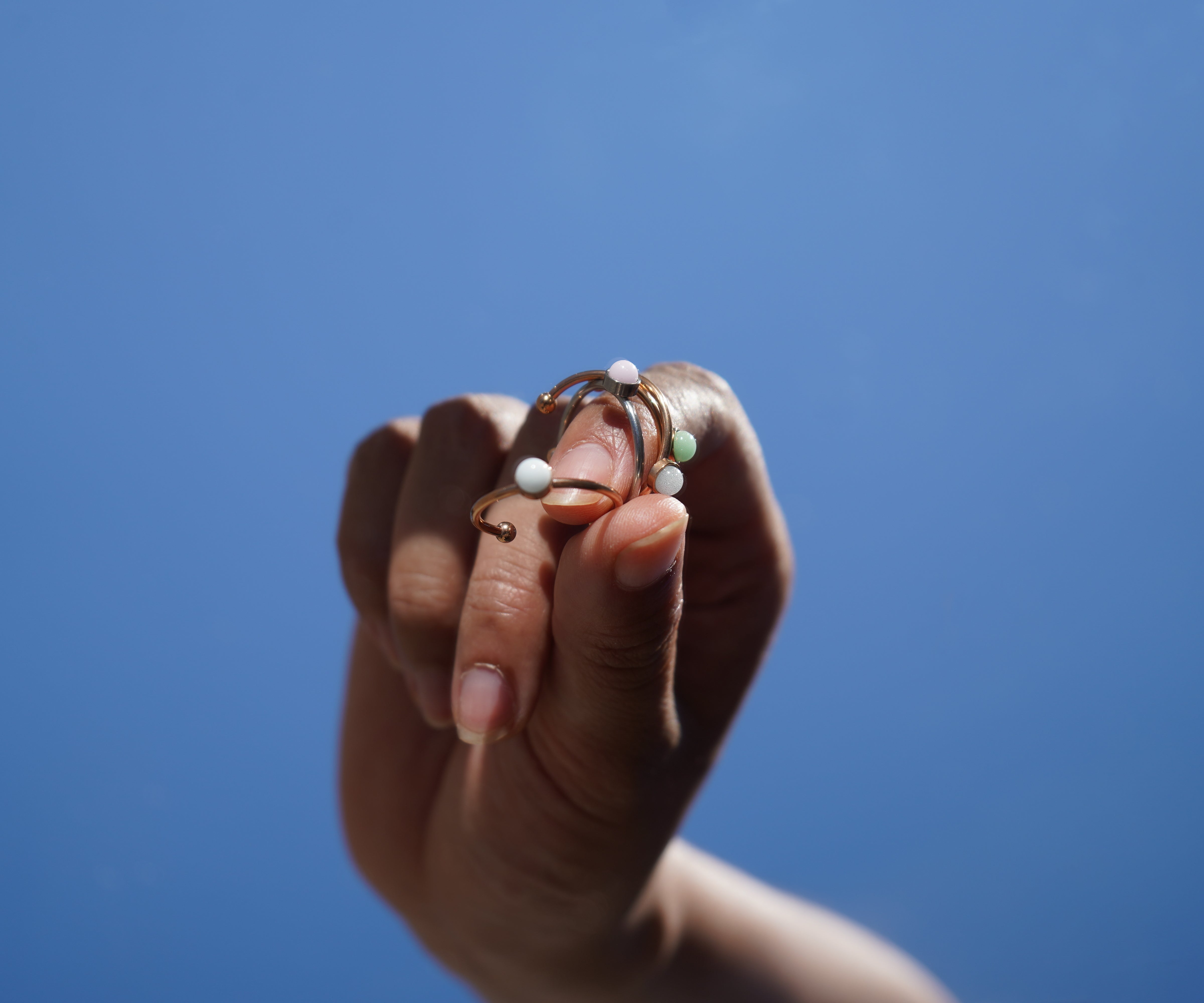 Explore our versatile handmade ceramic rings, boasting an adjustable design crafted from charming cone 10 high-temperature-fired clay, available in three delightful colors. The ring measures approximately 0.2 inches in diameter.